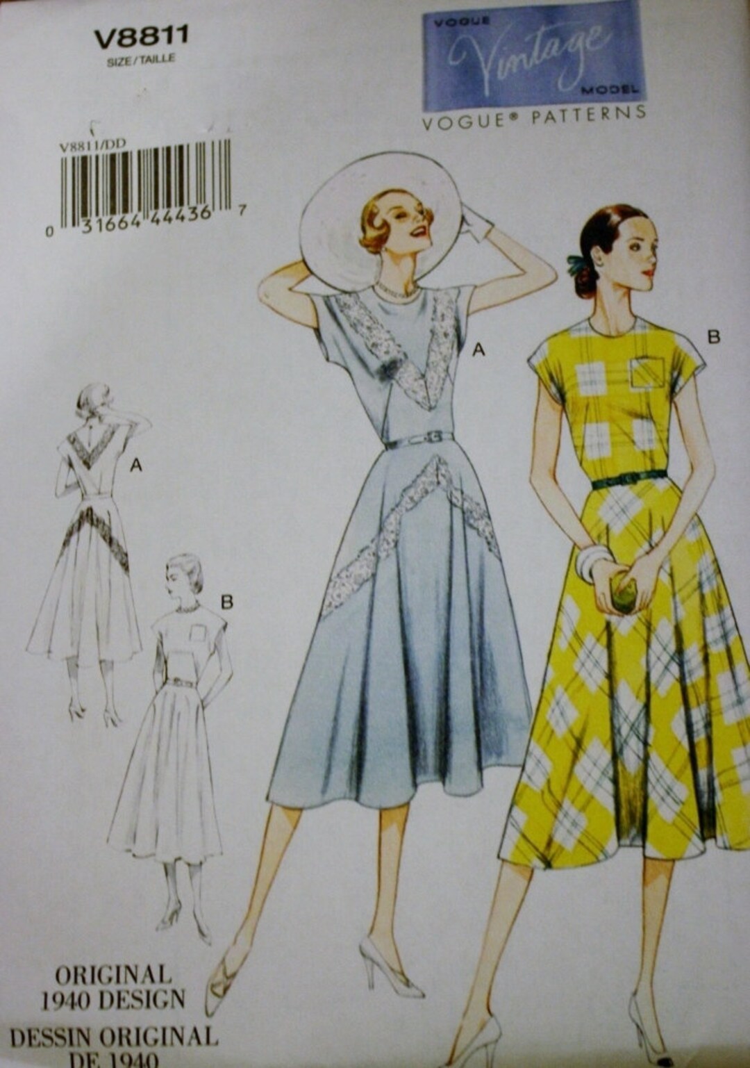 Vogue Sewing Pattern V8811 Womens 40s Dress Belt Ff Etsy Uk